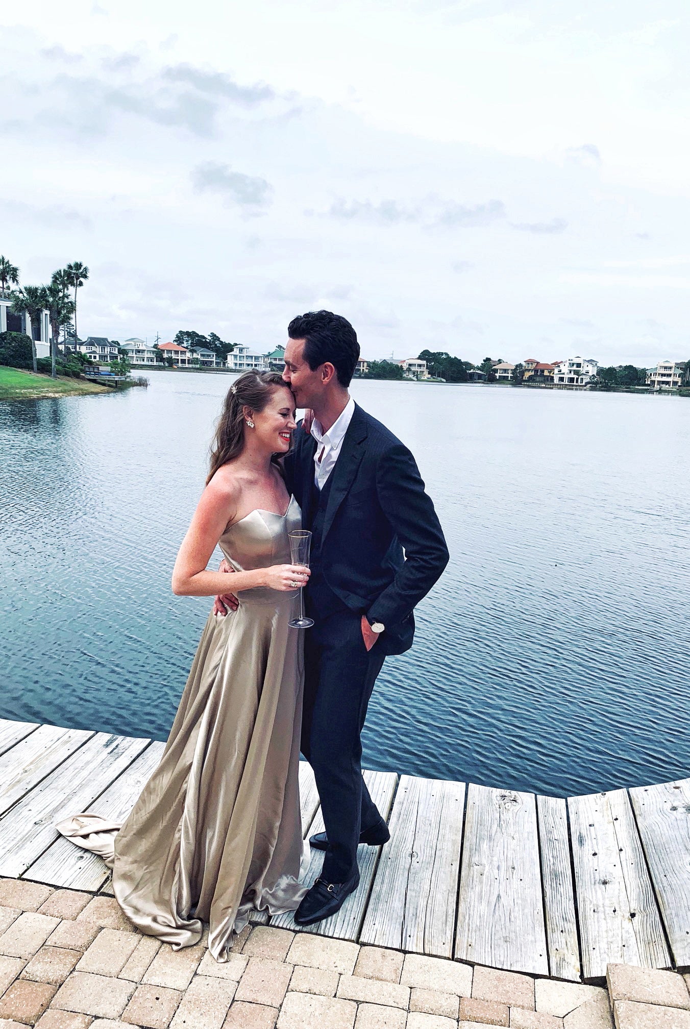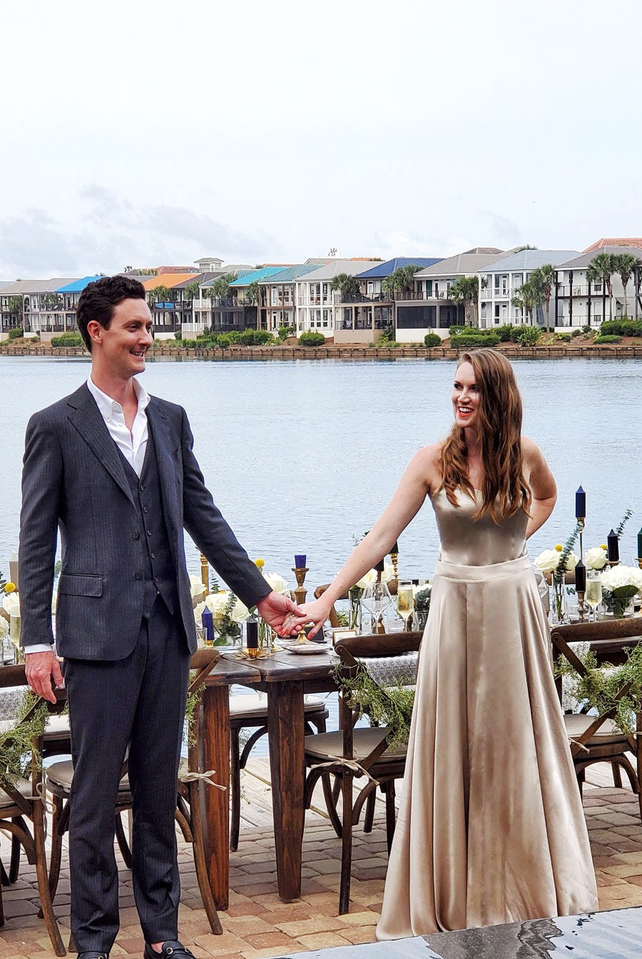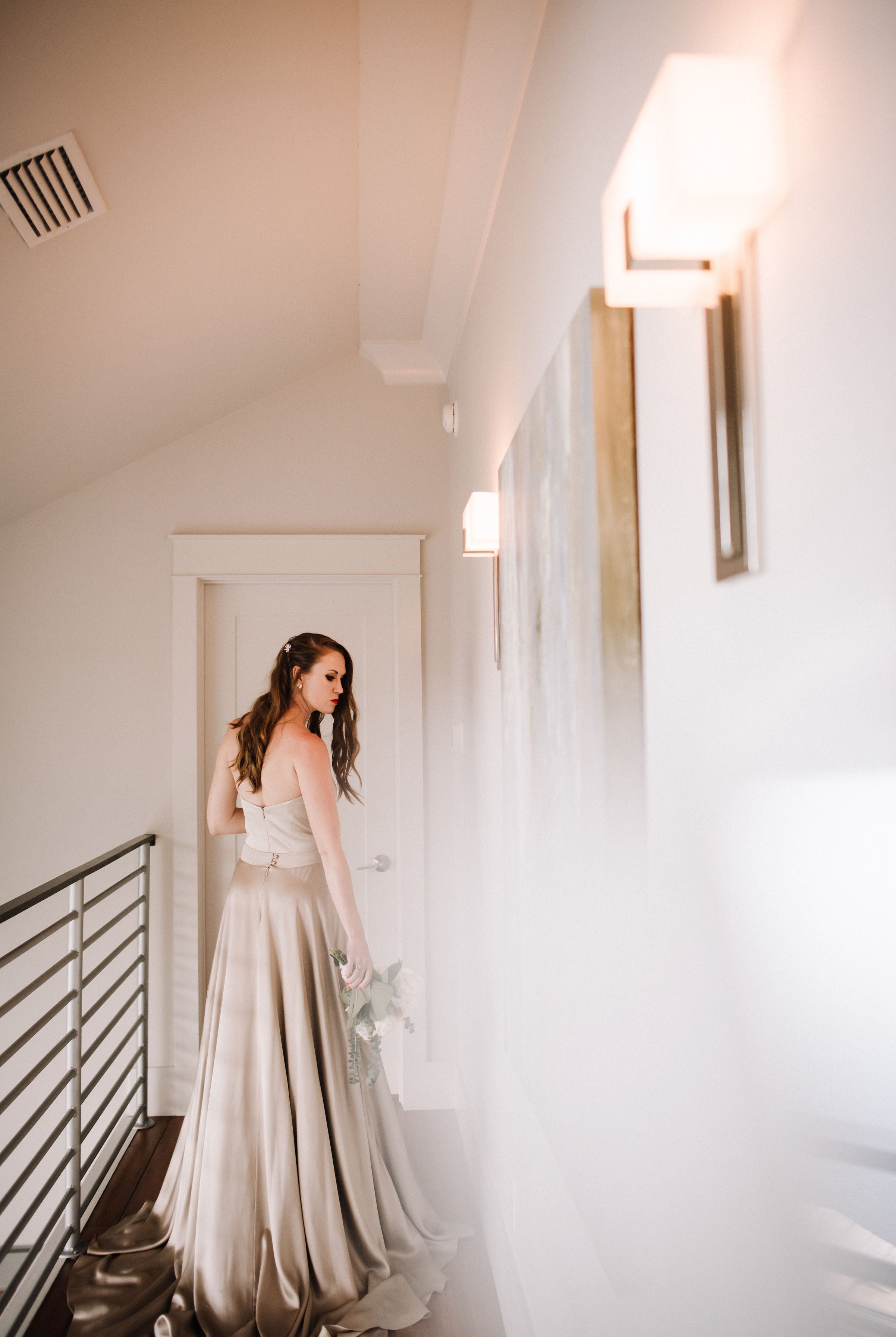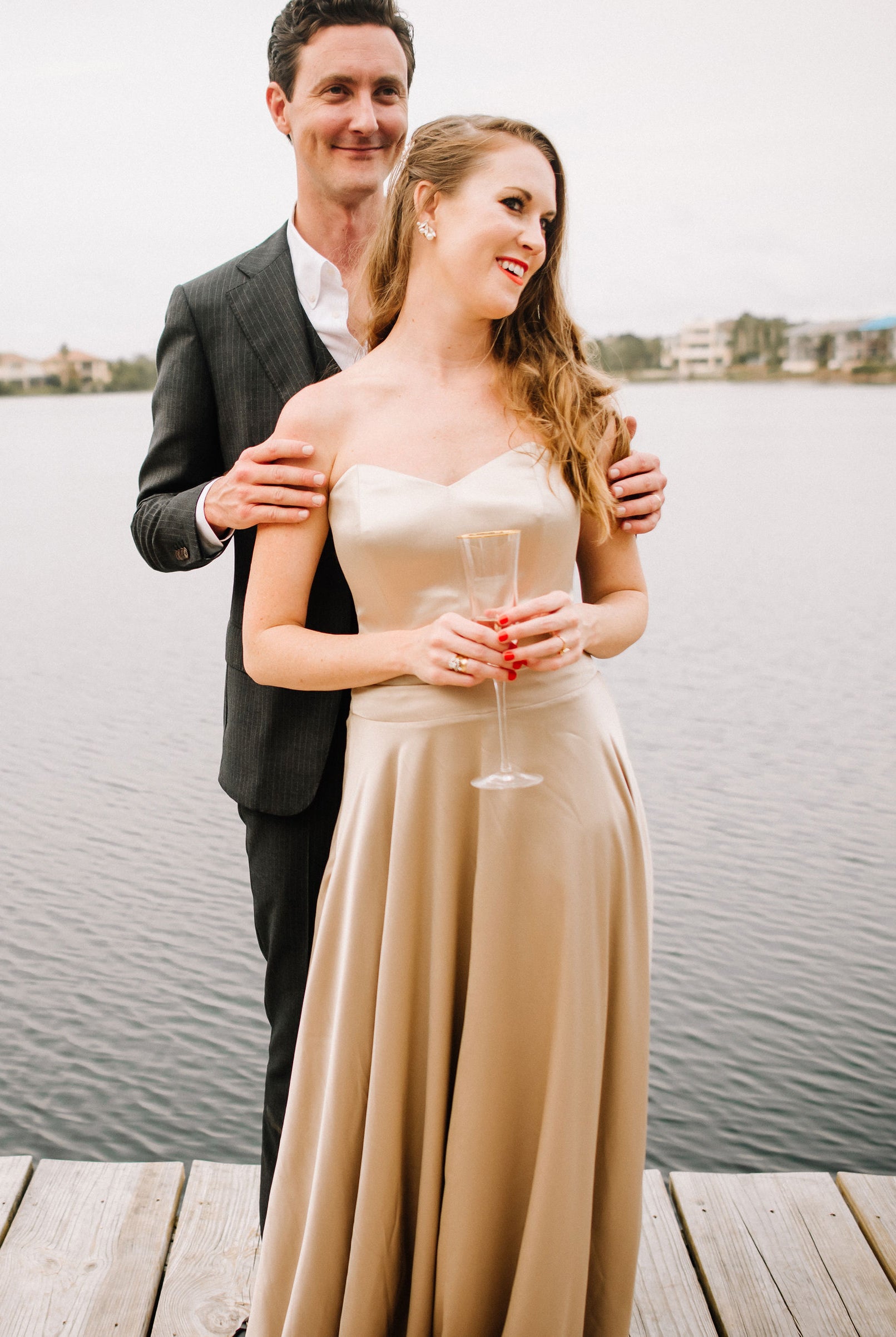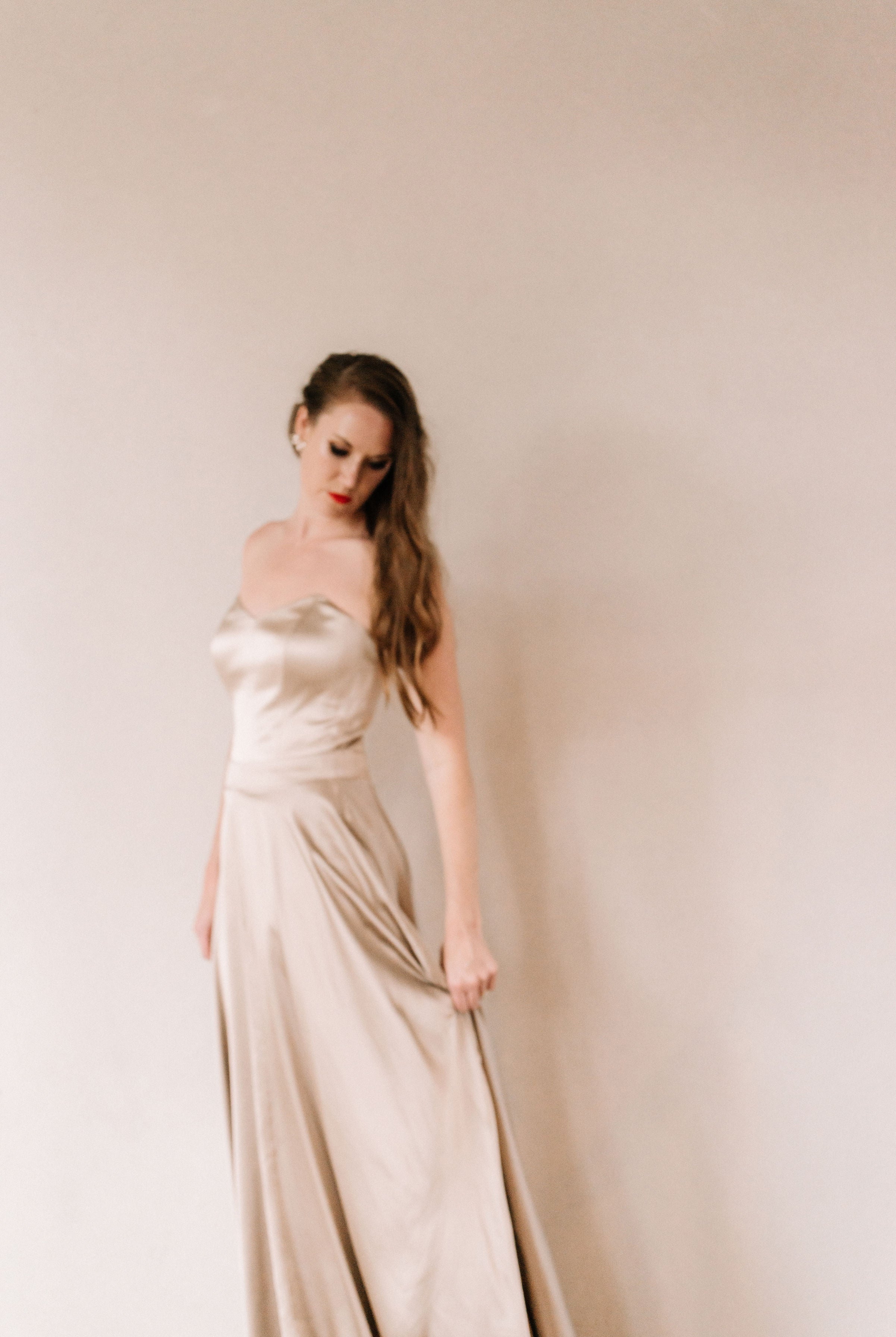 Our gorgeous bride, Ashley, said I do in our brand new Marianna dress in beautiful Oyster satin, in Texas in US. We loved created this stunning dress, it was a truly a thing of beauty in a softly boned corset with a pointed neckline and an A-line skirt. Available in ivory silk crepe and satin.