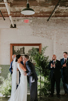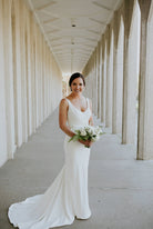 Christine found her Sylvie dress at Detroit Bridal House, in Michigan, US. Sylvie is a fitted bias cut gown with a column skirt wedding dress.