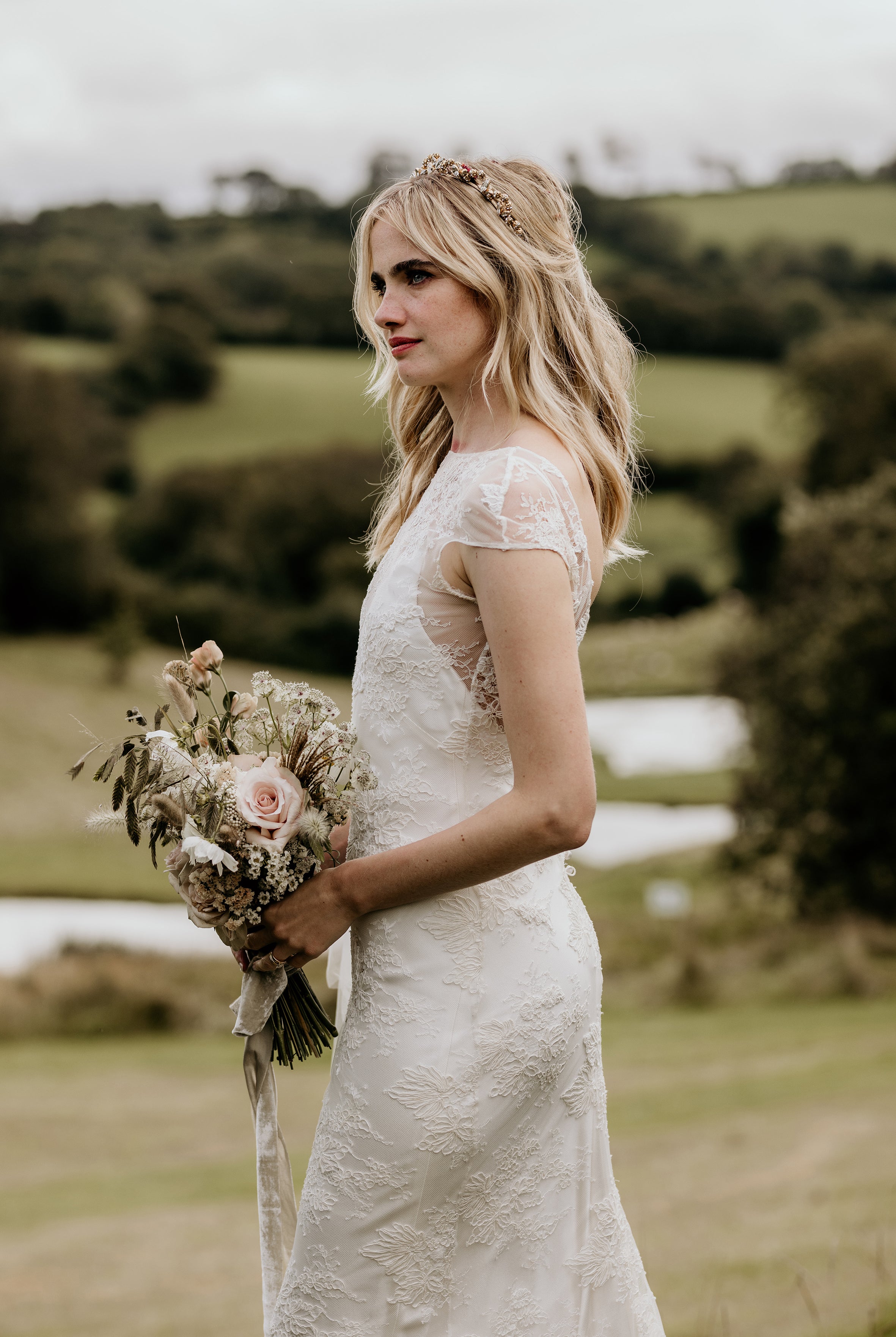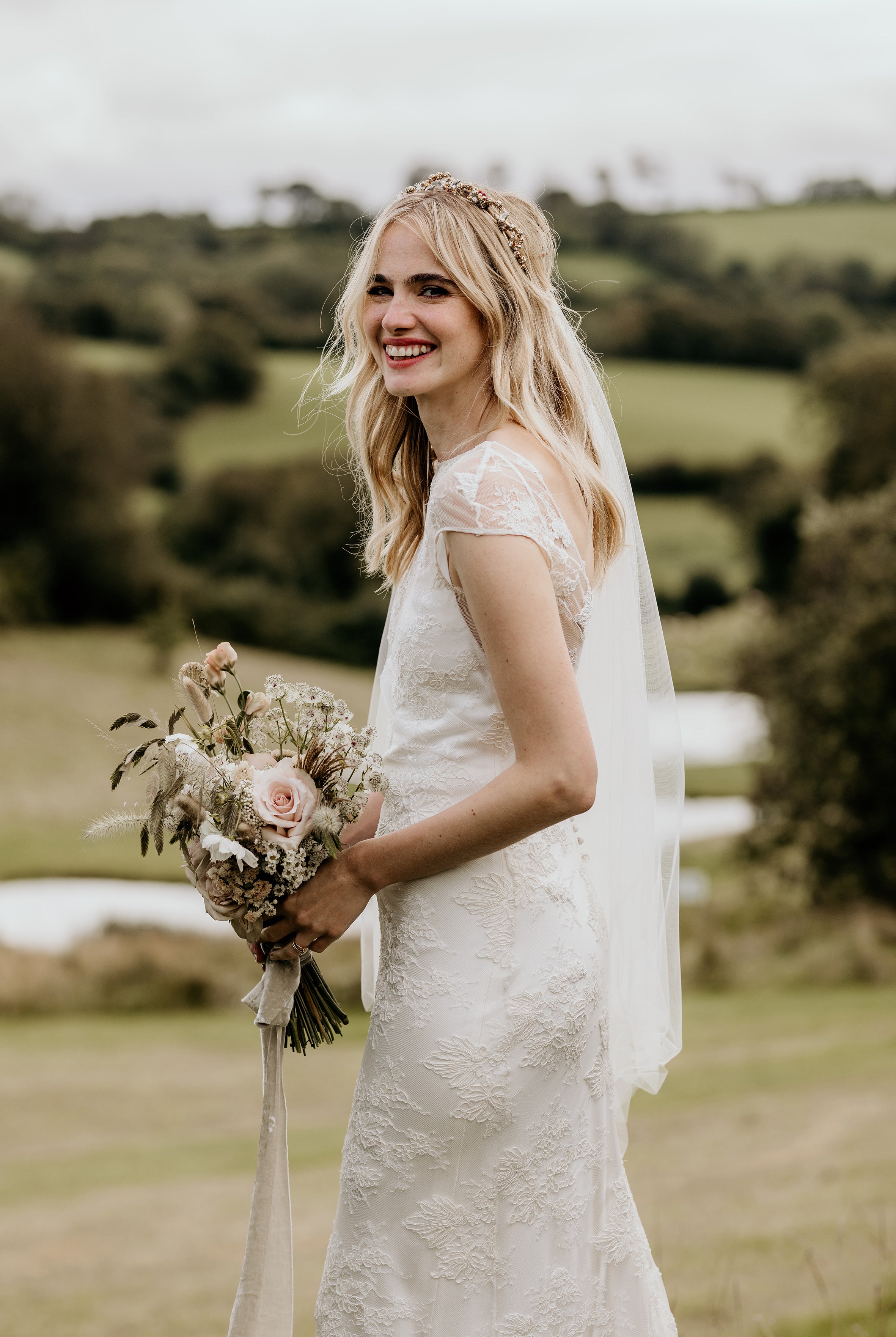 Elinor was a friend of one of our real brides from a few years back, Kate. She looked so stunning in our ivory coloured Elsa dress, worn under a cap sleeved version of the Margot dress.