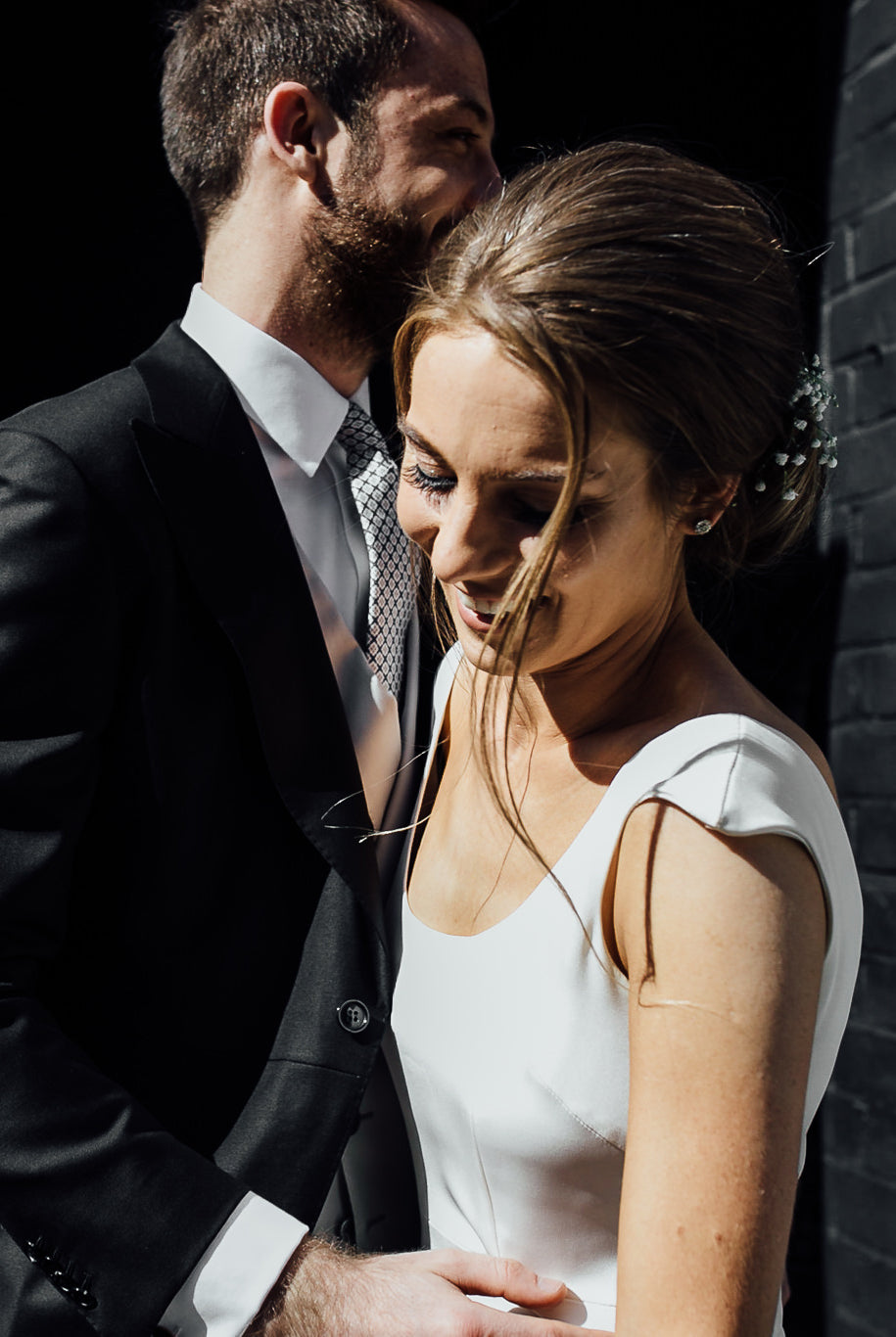 Georgina wore the Genevieve dress to her wedding from the Siren Collection, a dress with a scoop back neck cap sleeves, and a soft A-line skirt. Gorgeous images by Beatrici Photography.