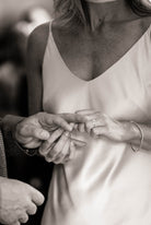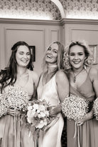 Gerry wore our slinky gold Elsa dress in glorious satin for her special day.