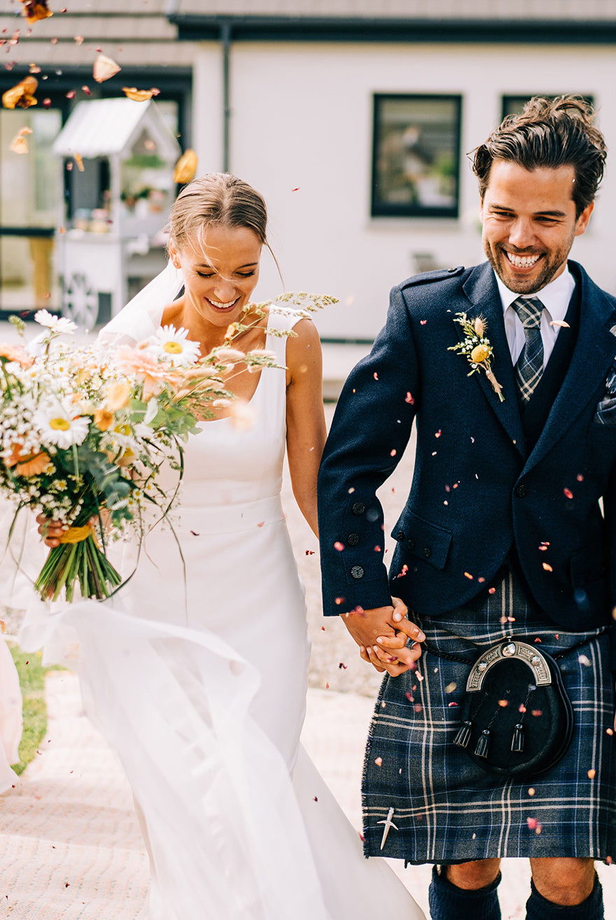 Laura was a bride who found us during lockdown and was based far away from London, in bonny Scotland. But as we had already pivoted things with virtual appointments and a home trial service, Laura was able to find her dream dress and doesn't she look sensational? She fell in love with our Genevieve dress, a style that has been in our collections since we first began dressing chic brides. We decided to bring this popular style back and added it to the Couture Collection.