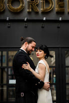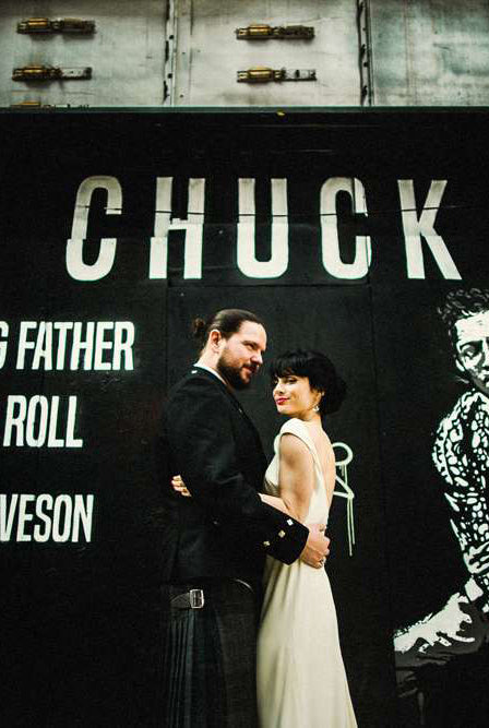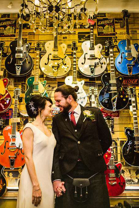 Lottie wears our Lilian dress in a Rock n Roll themed wedding shot by Matt Parry Photography.