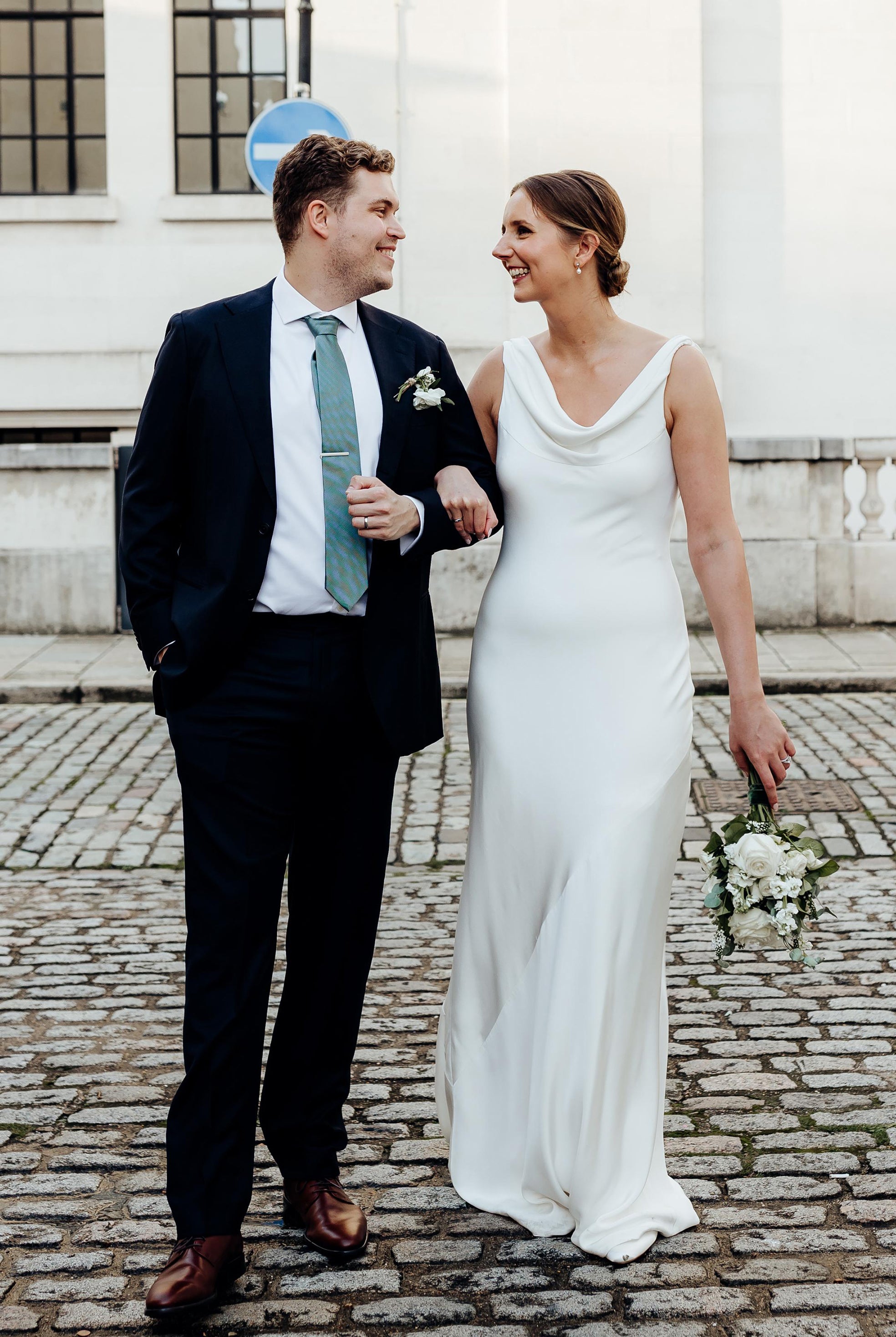 Finding the perfect dress when you're 6ft is certainly not easy, which is what Madeleine found until she found us that is. We have dressed a few tall brides since we founded the label in 2006. We happily extended the length of our much-loved Josephine dress. Absolutely love seeing these pics of our happy bride, check that big beaming smile. Thank you so much for sharing your gorgeous pics and for choosing us too. It was a pleasure to meet you and create your Josephine dress for you 🤍🤍🤍