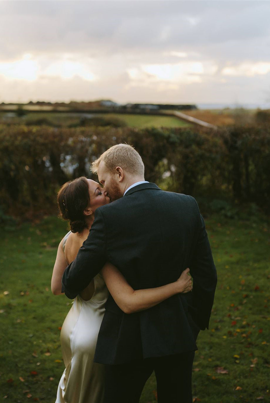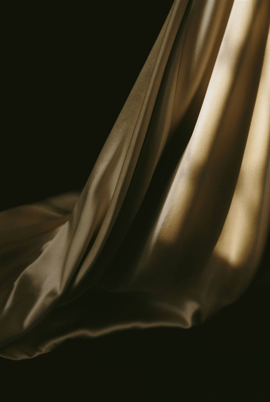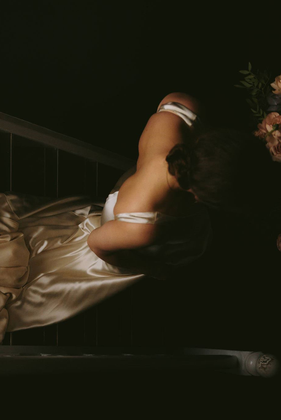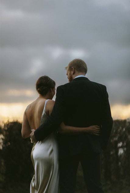 Sarah wore the Elsie dress in our signature liquid gold that our Elsa dress is made from.